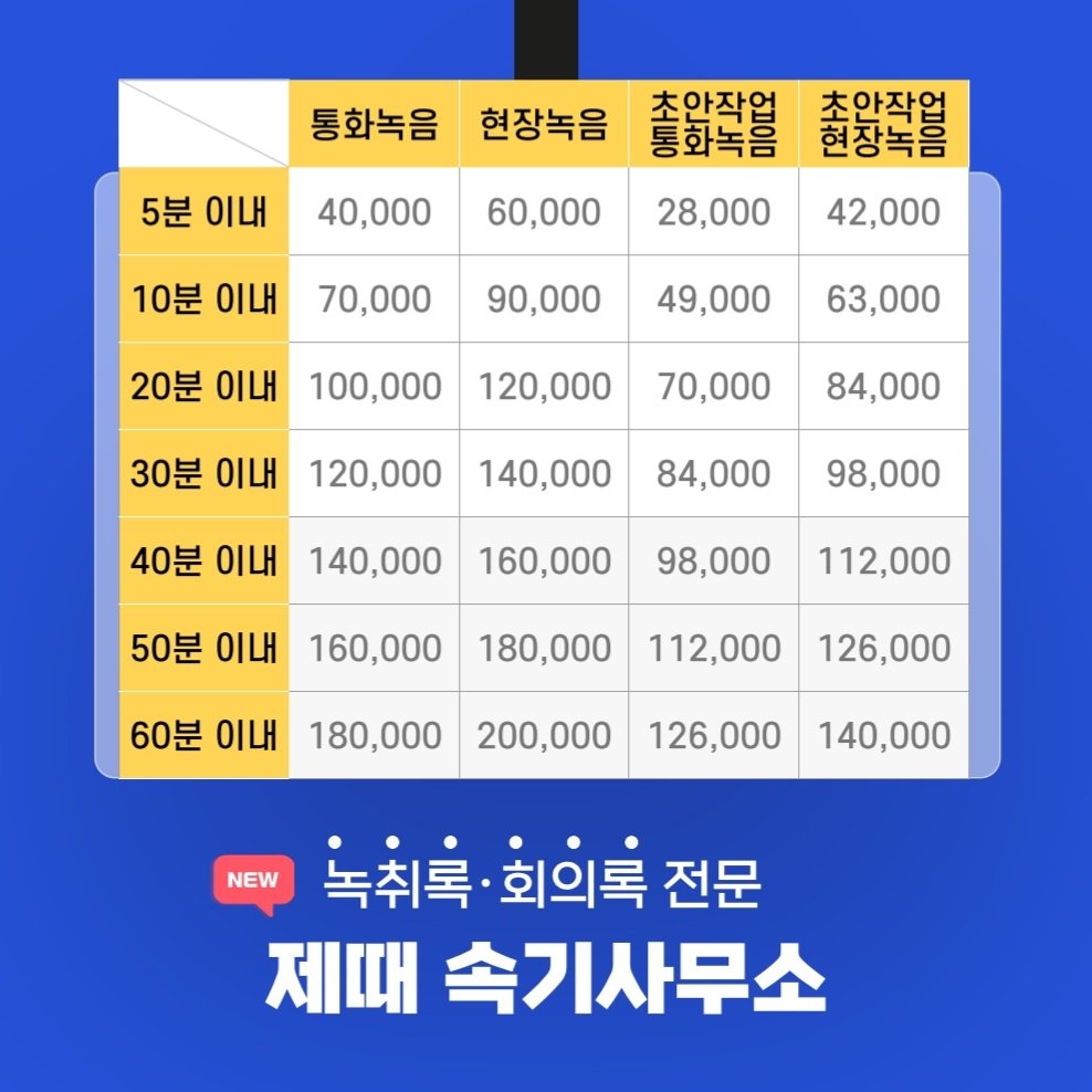 녹취록 비용은 아래와 같습니다.