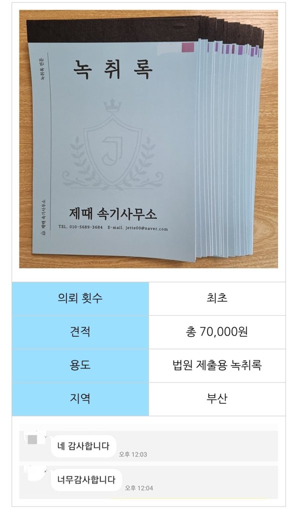 이상, 제때 속기사무소 의뢰인의 법원 제출용 녹취록 후기였습니다.