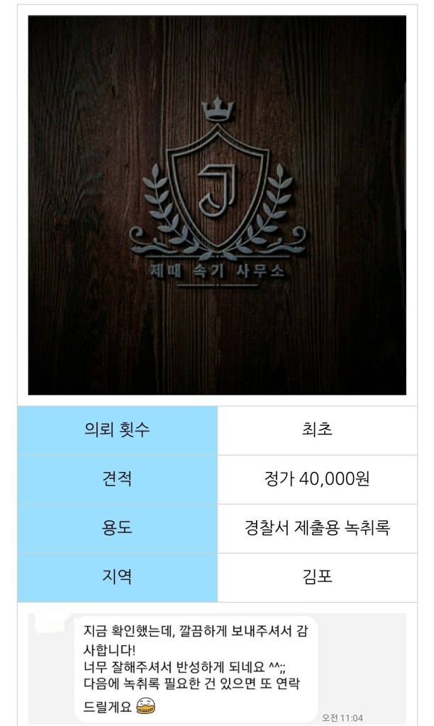 법률사무소부터 대기업까지 먼저 연락이 오는 곳입니다. 제때 속기사무소에 대해 이미 파악을 완료하고 연락을 주는 곳입니다.