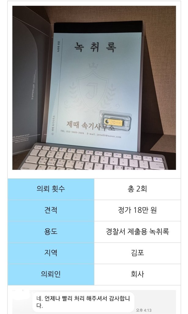 저번에도 그랬듯이 사무실 앞으로 방문하여 녹취록을 받아 가셨습니다.너무 반갑게 인사해 주셔서 감사했습니다.