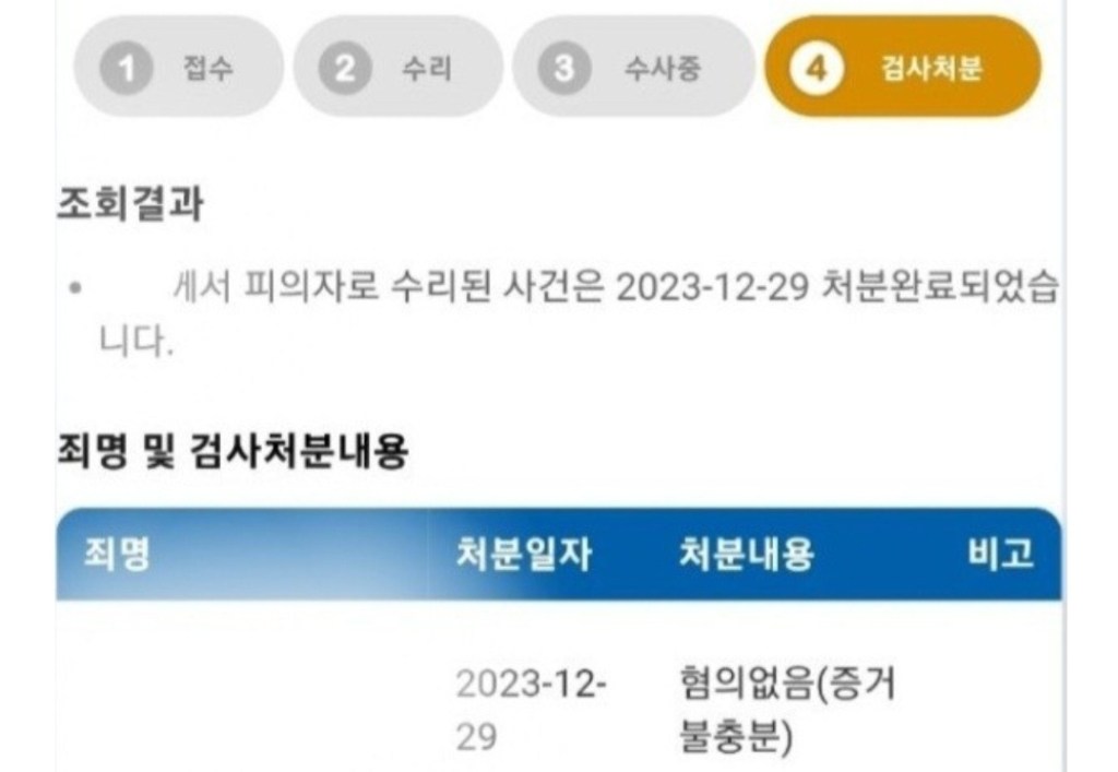 피의자가 될 뻔했지만 ‘혐의없음‘ 처분을 받았습니다.