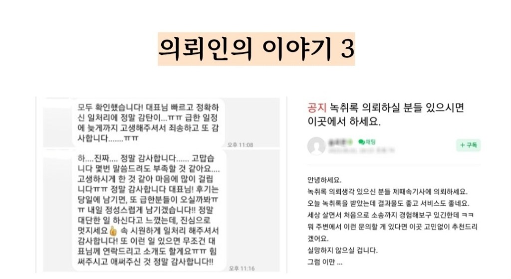 해당 카페의 ‘VIP 녹취록 문의‘에 글을 남겨주시면 20% 할인됩니다.